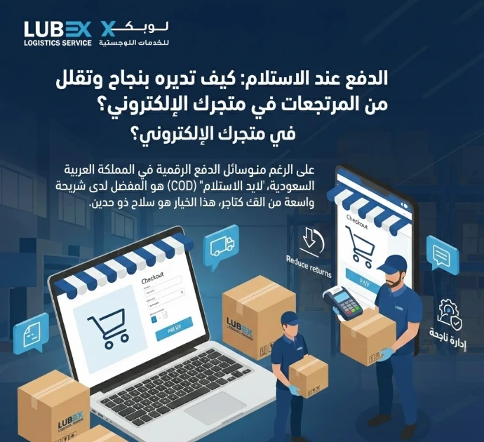 خاتمة الدفع عند الاستلام ليس عقبة، بل هو ميزة تنافسية إذا تمت إدارته بشكل صحيح مع شريك لوجستي يفهم احتياجاتك. لا تدع الخوف من المرتجعات يمنعك من زيادة مبيعاتك.